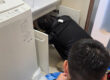 針谷部長に床を開口して下地を補強し、床鳴りを改善していただきました(上)!
